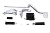 FXD mid control kit includes chrome components and is for stock replacement on FXD mid control models where the shifter shaft goes through the primary cover or for the conversion from forward controls. Kit includes factory style components for a mid control upgrade and/or conversion. Order brake line reservoir feed line and hardware separately. Addtional hardware is required. *NOTE: When converting FXD models to mid controls the inner primary must have provision to accept shifter shaft. FXDWG with OEM forward controls do not have the bushing in the inner primary to accept mid shifter shaft this require an FXD inner primary with shifter shaft bushing hole.