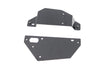 Black flat left and offset right FXR electrical wiring panel set. Panels mount by 1/4 inch-20 well nuts and 1/4 inch x 20 x 3/4 inch screws. The right side accepts a starter relay and 4 circuit breakers held on by pop rivets finished in black. The left side features a rectangle hole in the corner.