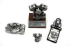 Knucklehead gift set includes a motor model keychain lapel pin belt buckles and patches that can be ironed or sewn on. Sold as a 6 piece set. *NOTE: When using an electric iron to apply the patches to clothing NEVER use steam. Patch can be sewn on after being attached with it's adhesive.