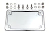 License plate frame kit includes chrome frame and chrome backing plate for 4 inch x 7-1/4 inch standard plates. Hardware included. Hole measures 5-3/4 inch x 2-3/4 inch.