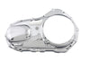 Chrome steel primary cover fits over existing stock primary covers to mirror the contour for a skin tight fit. Cover is held in place by existing hardware. Clutch cable must be removed & reinstalled for installation. Order inspection & derby cover separately.