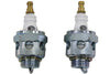 These spark plugs are for the antique motorcycle enthusiast who enjoy riding. Spark plugs are air cooled with a heat range #3. Includes the brass top nuts which are used with earlier style terminals or hood style and sealing gaskets. Set of two. Terminal nut is removable. Plug set has a round electode profile. Replica spark plugs have a 1-1/8 inch hex shape and 18mm thread.