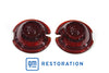 Red replica fish-eye style glass lens set is made from inchGuide inch tooling with all the original style markings. Front of the lens reads inchGuide inch and inchDH-49 inch. Mounting flange is 3/16 inch thick. Sold as a pair.