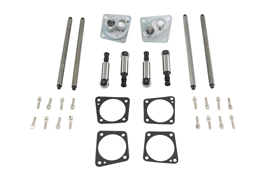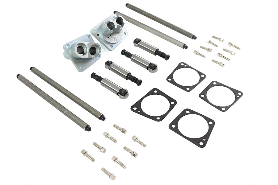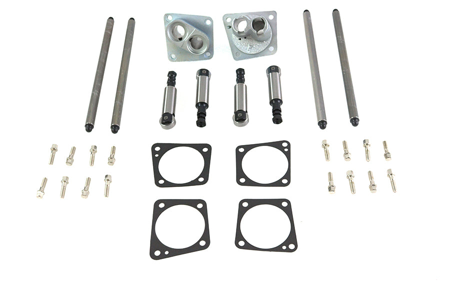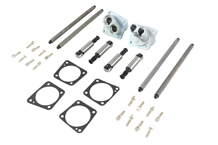 Sifton solid tappet kit includes zinc plated lifter blocks an alloy pushrod set a solid lifter set with adjusters gaskets and lifter base screws kit measuring 1/4 inch x 20 and 1/4 inch x 24.