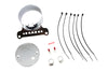Chrome single gauge mount bracket for speedometer or tachometer. Use with correct gauges for proper fitment. The distance between the bracket holes measures 4-1/4 inch. *NOTE: Indicator lamps not included. Accepts 3-1/2 inch gauges GPS speedometers or 12 volt tachometers with adapter ring available separately.