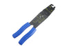 Spark plug wire tool strips 7 and 8mm ignition wires and crimps spark plug and distributor terminals.