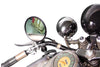 Spring Fork round mirror has a 5 inch stem and clamp with a black finish.
