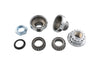 For adapting 1 inch Spring Fork for assemblies to tapered neck bearings with chrome cups to fit tapered bearings. Timken style bearings measure 1.787 inch outer diameter and 0.998 inch inner diameter. Bearing 44649 with recessed taper fits over the lower bearing guard on Big Twin Spring Forks. Kit includes chrome plated neck cups ball bearings upper and lower races and chrome top nut with dust cover pressed on.
