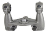 Spring Fork unitized tree and riser for inline Spring Forks Big Twins 45 inch models and most custom chopper forks. Features a cast steel construction with satin nickel plated high lites. Riser is investment cast with satin nickel plating and vibration grinded finish. Risers accepts 1 inch handlebars. 7/16 inch-20 hex bolts are included. The distance center to center on the width of the clamps measures 4-3/4 inch and 3-3/8 inch on the center of the clamp to the bottom.