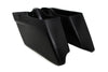 Stretch saddlebag bottom set includes right and left side with black unfinished surface for dual exhaust models. For Road King driver's looking to keep stock bags complete or for converting from leather covered bags. Bottoms are 2 inch deeper in the front than stock and 3 inch deeper in the rear for the stretched look. Installer may re-use stock hardware. Bags feature a raw finish and are made from thick ABS plastic injection-molded with highly polished tooling this process creates a solid construction clean body lines and smooth surfaces inside and out which require minimal prep for primer and paint. Set includes bags only. Order lids separately. Complete hinge latch and hardware kit is also available separately. All pieces are constructed of black fiberglass and reinforced FRP plastic ready for primer and paint. FRP is made up of polyphenylene oxide/polyamide alloy.