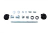 Kit includes 2 bushing assemblies spacers plastic retainer rings rubber isolators and 1 pivot shaft with lock nut. Mounting kit includes all parts to mount transmission and swingarm to pivot block. Will work with stock or aftermarket rubber mount swingarm frames.
