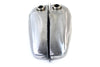 Raw finish gas tank set accepts gas only on both sides 5 gallons. Tanks has 2 3/8 inch NPT fittings on each tank half. Tank includes 2-1/2 gallon per side for gas only. Tank does not have provision for instrument dash panel or fuel shut off rod. Must use remote oil tank! 45 WR tanks use rubber fuel and oil lines as Original. Tank accepts 1936-46 early shifter gate. Does not accept reserve fuel shut off rod assembly.*NOTE: Uses 2 vented gas caps which are not included. Before installation or painting check gas tank for any flaws. Do not grind or sand seams or welded joints. Clean the inside of the tank pressure test. Check petcock openings ensuring petcock can be easily installed. Use proper hardware for the installation process. Order oil return pipe kit separately. Please install tanks with fitting in frame with motor installed before painting. *NOTE: WR style gas tank sets may require installer to indent the bottom of the tank for head or other clearances required.